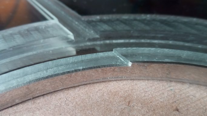 Executed in brass and chrome plated, with fluted glass that was custom mirrored on the reverse.