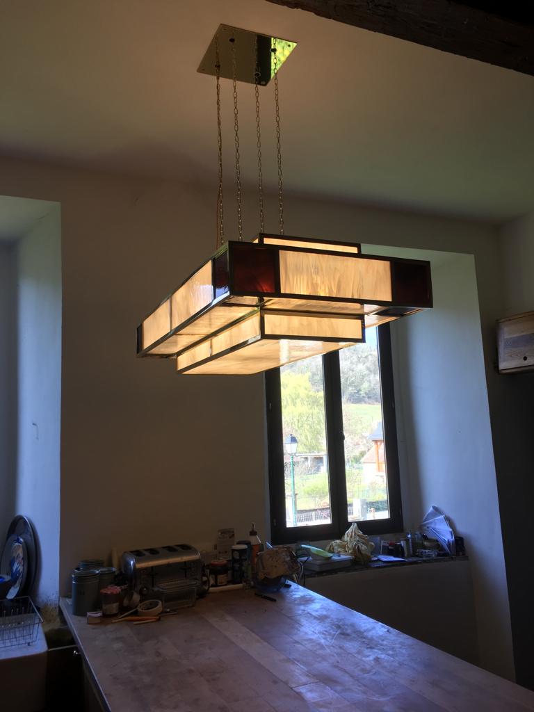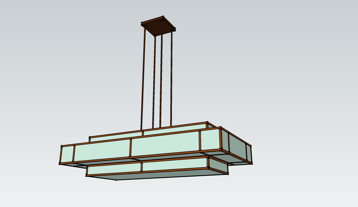 Brief: Art pair of deco style chandeliers to hang over the kitchen island and dining table.