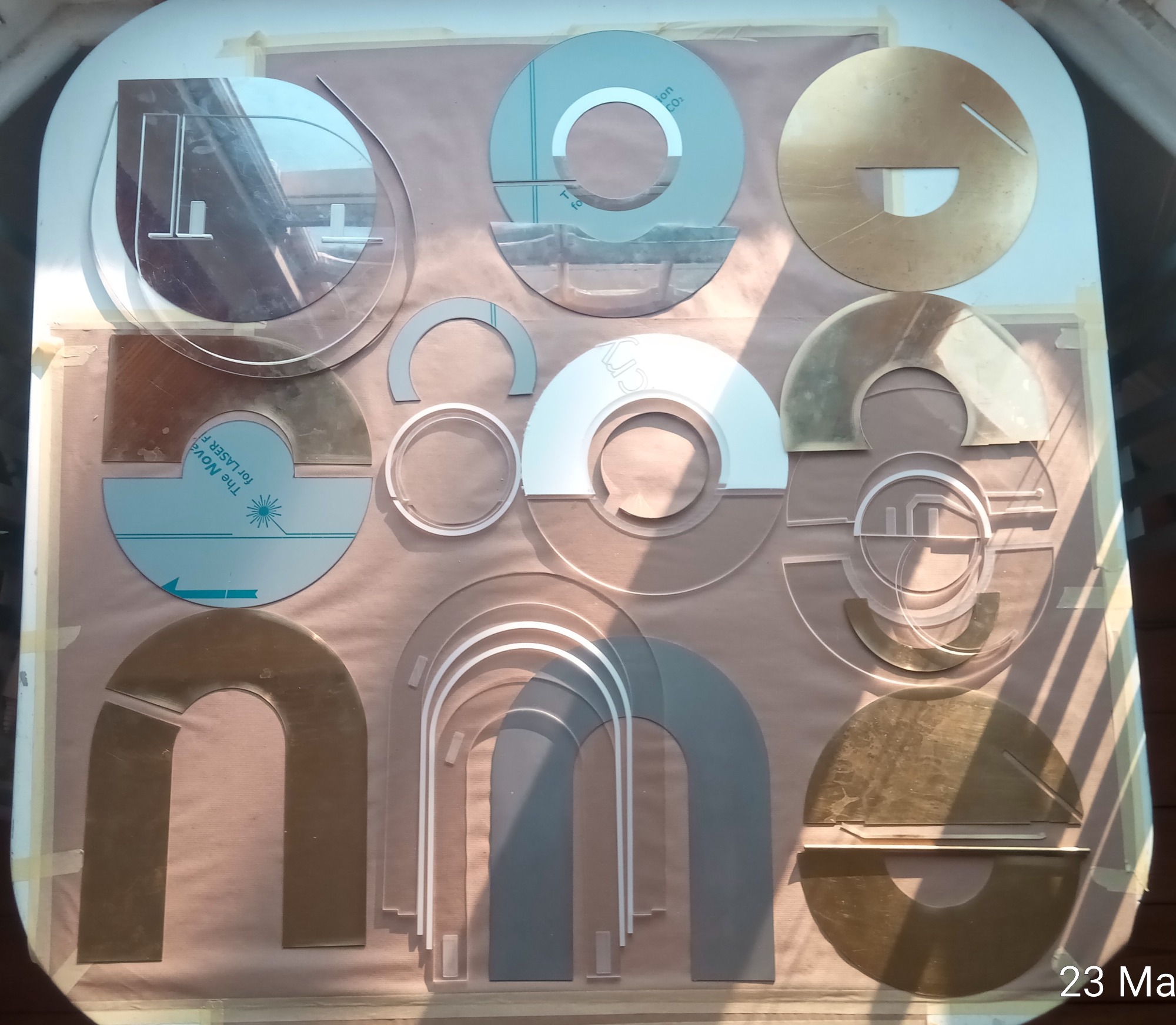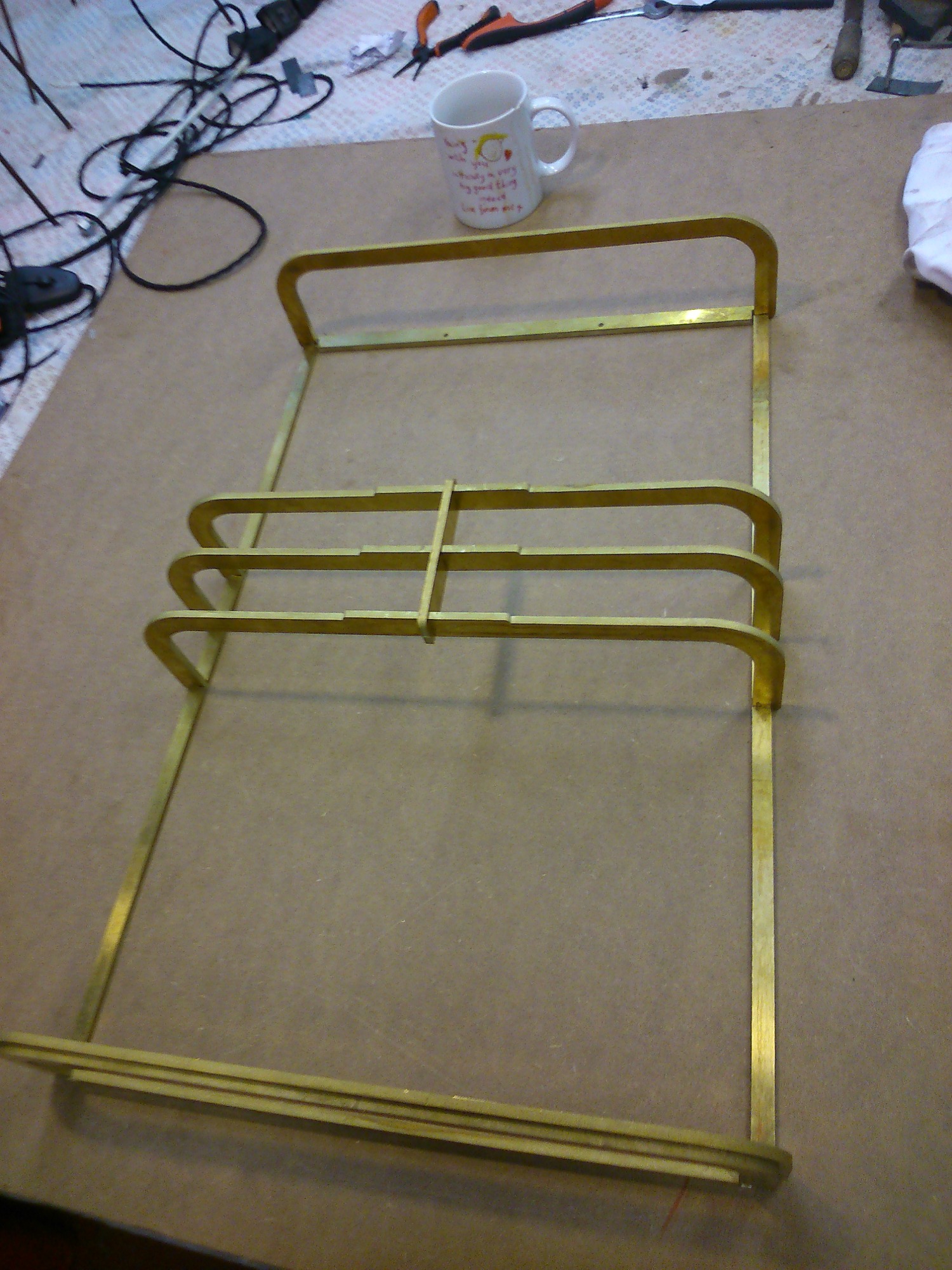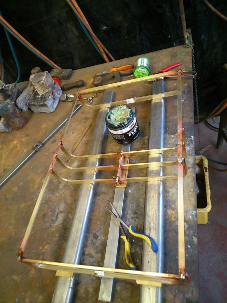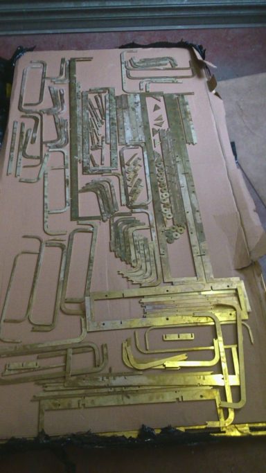 Executed in brass and laminated cigarette paper.