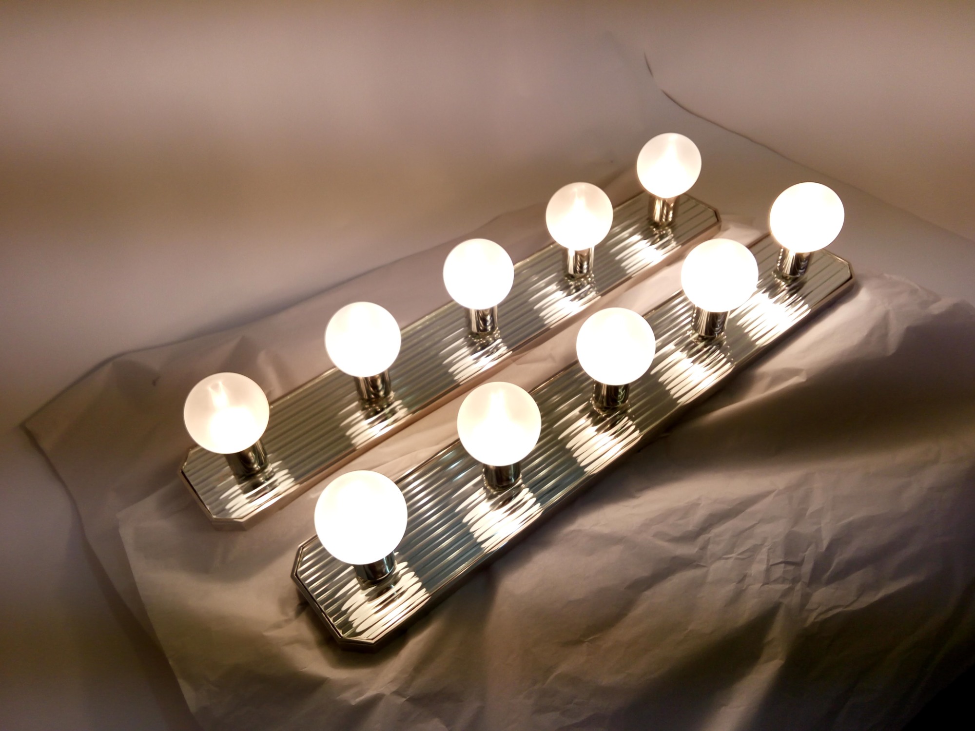 A pair of Hollywood style vanity lights
