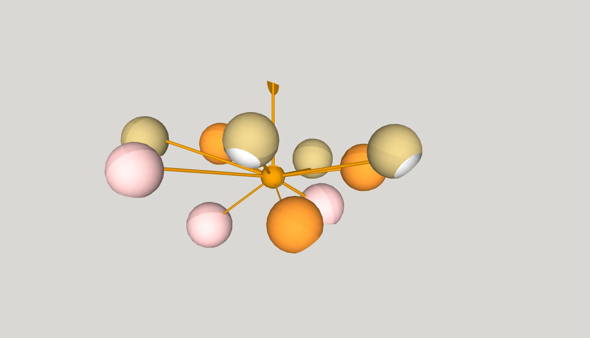 Brief: A sputnik style chandlier, but unique and stylish. Bold, with a mid-century look.