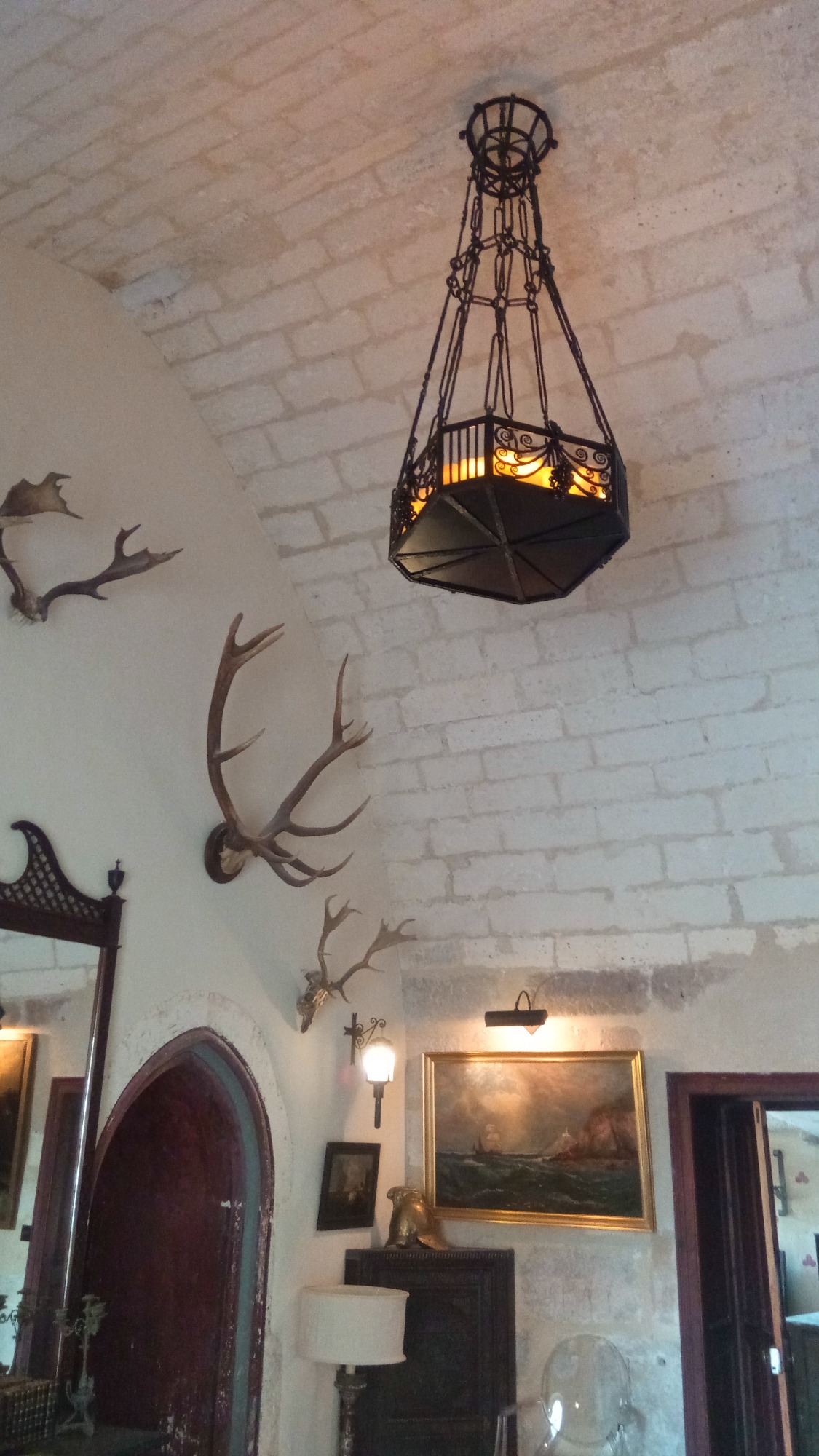 Brief: A candle gallery for a wrought iron chandelier, in a medieval style, for the atrium of a 14th Century chateau.